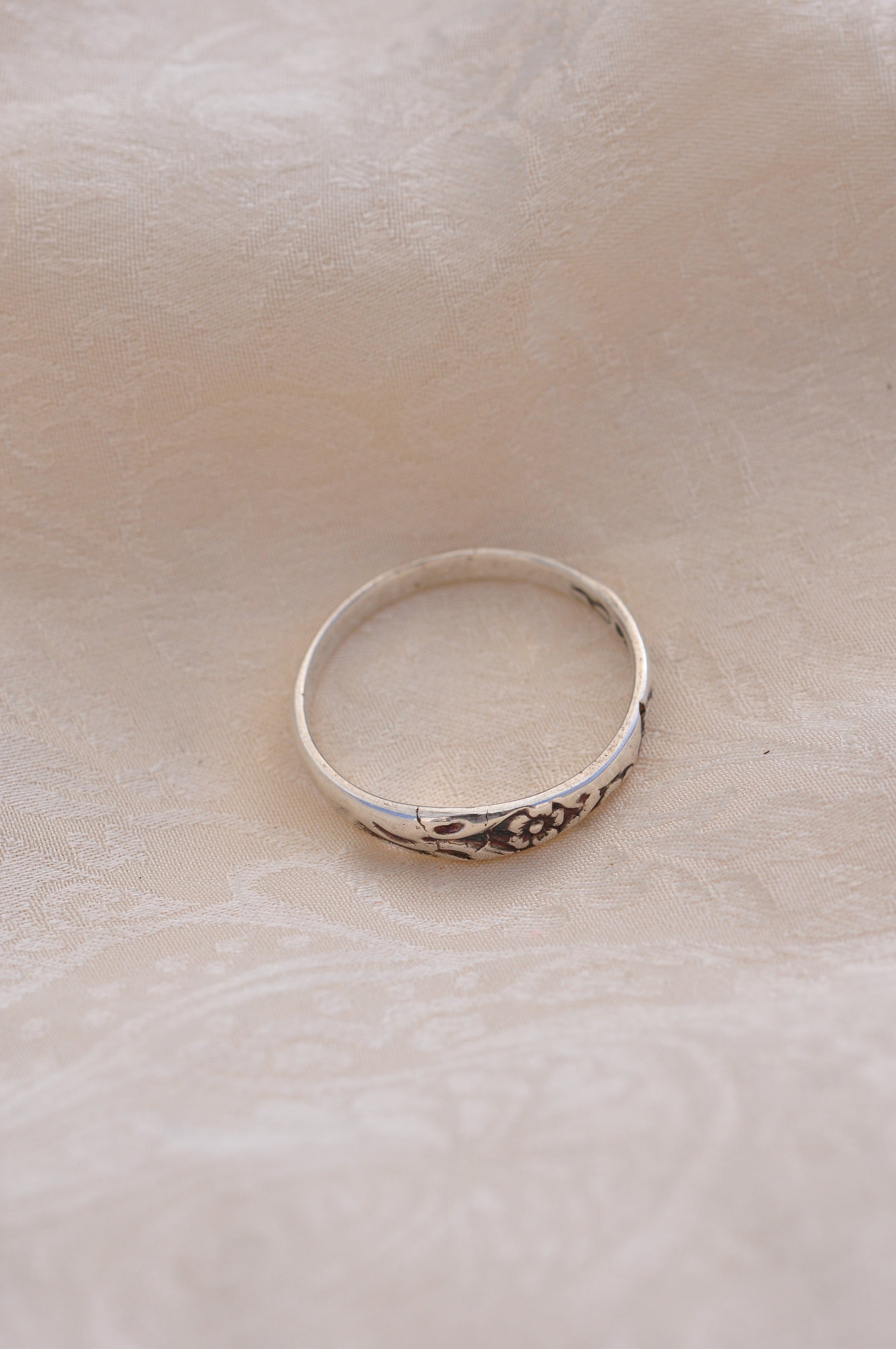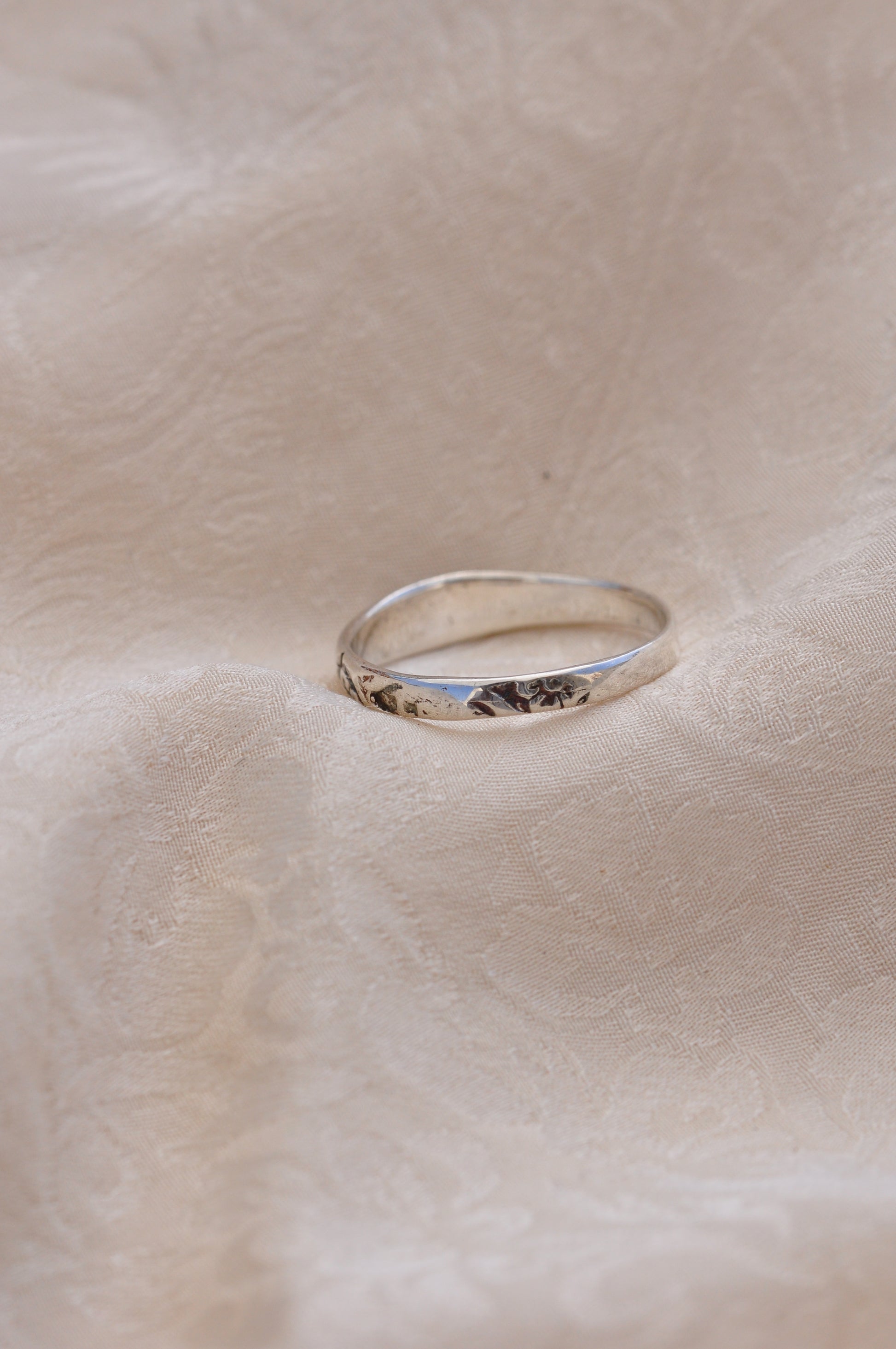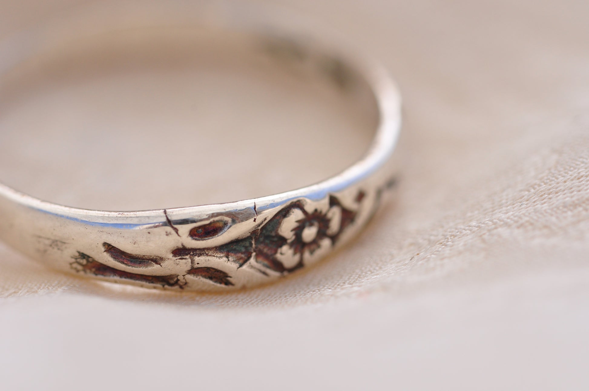 טבעת מכסף בשילוב עיטורים מוטבעים