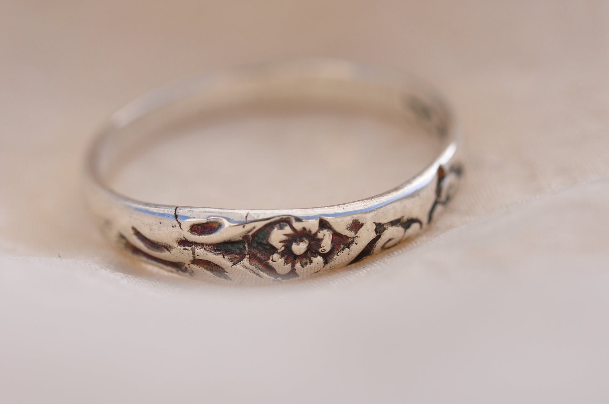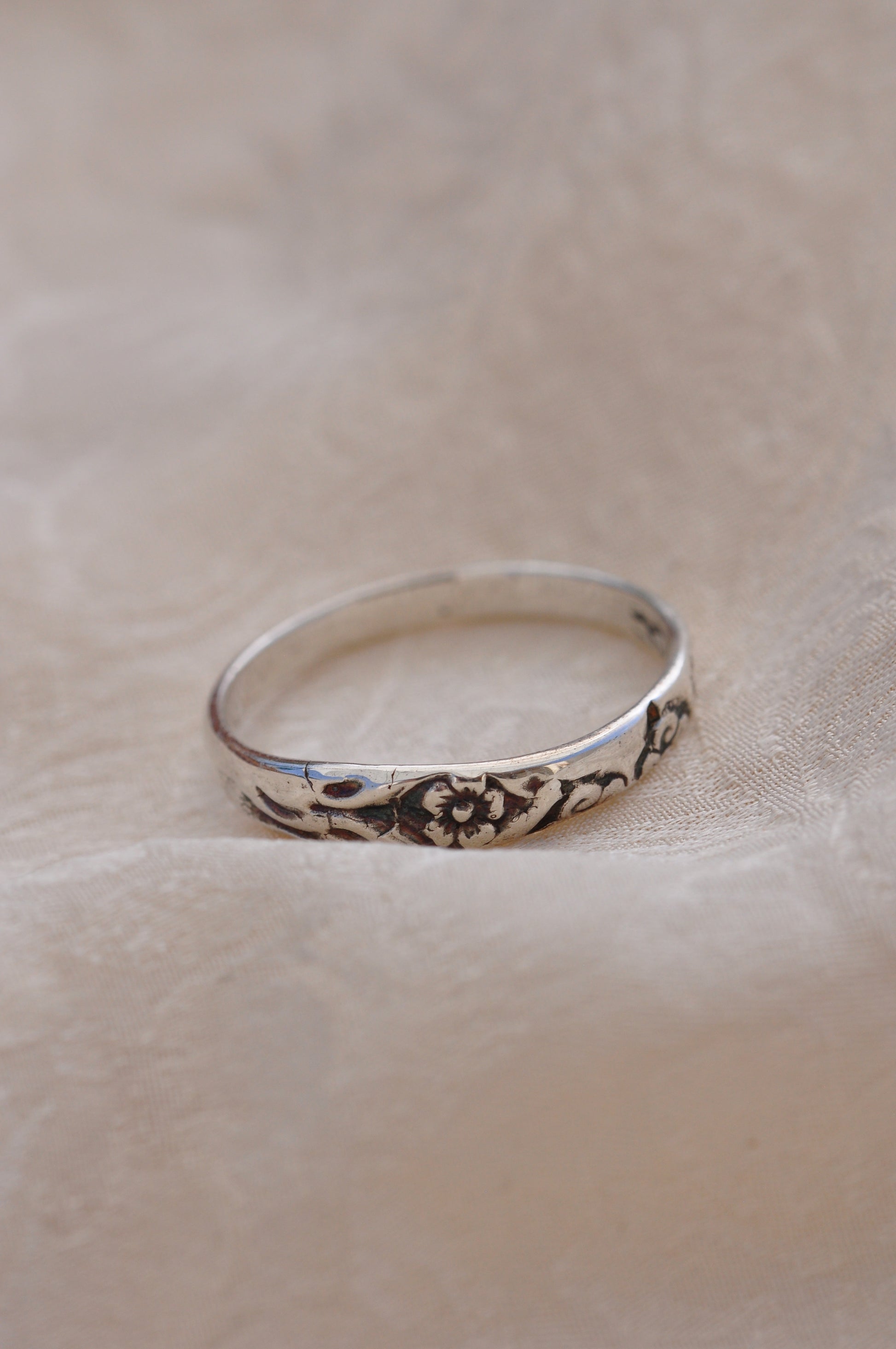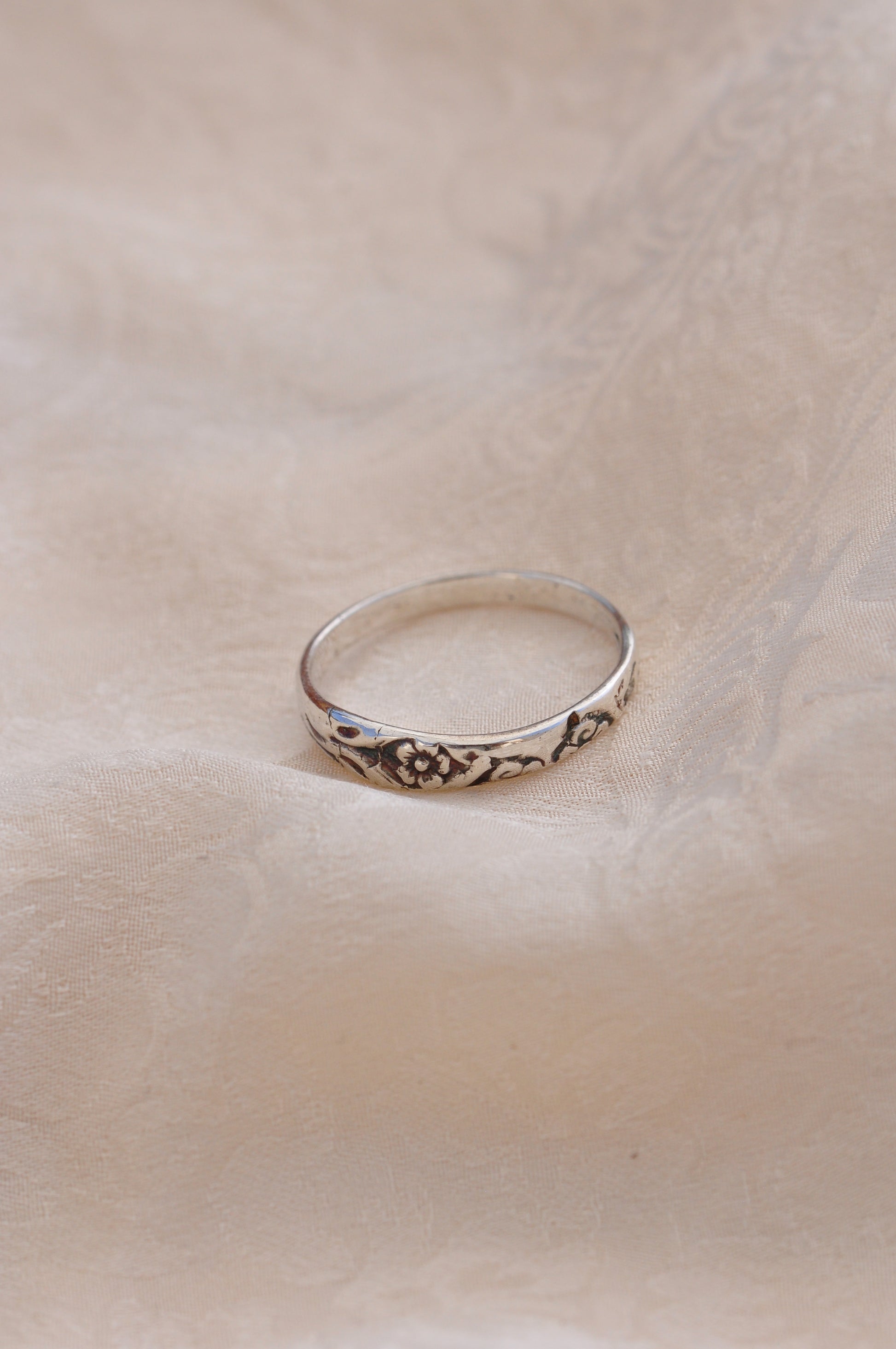 טבעת מכסף בשילוב עיטורים מוטבעים